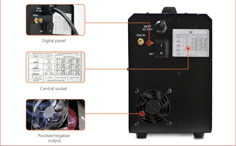 -【 3 em 1 MIG Inverter Welder】: Novo modelo de soldadura com ajuste digital. 180Amp DC inversor soldador tem 3 funções de soldagem: MIG, ARC e LIFT TIG. Poderoso DC 24V ventilador axial arrefecimento gasless soldador mig soonly. O modo da soldadura 2T/4T permite