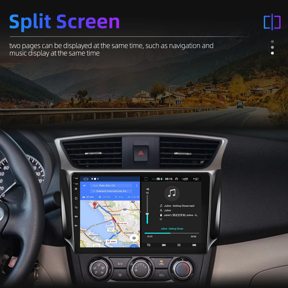 Function função de tela dividida: duas páginas podem ser exibidas ao mesmo tempo, como navegação e exibição de música ao mesmo tempo