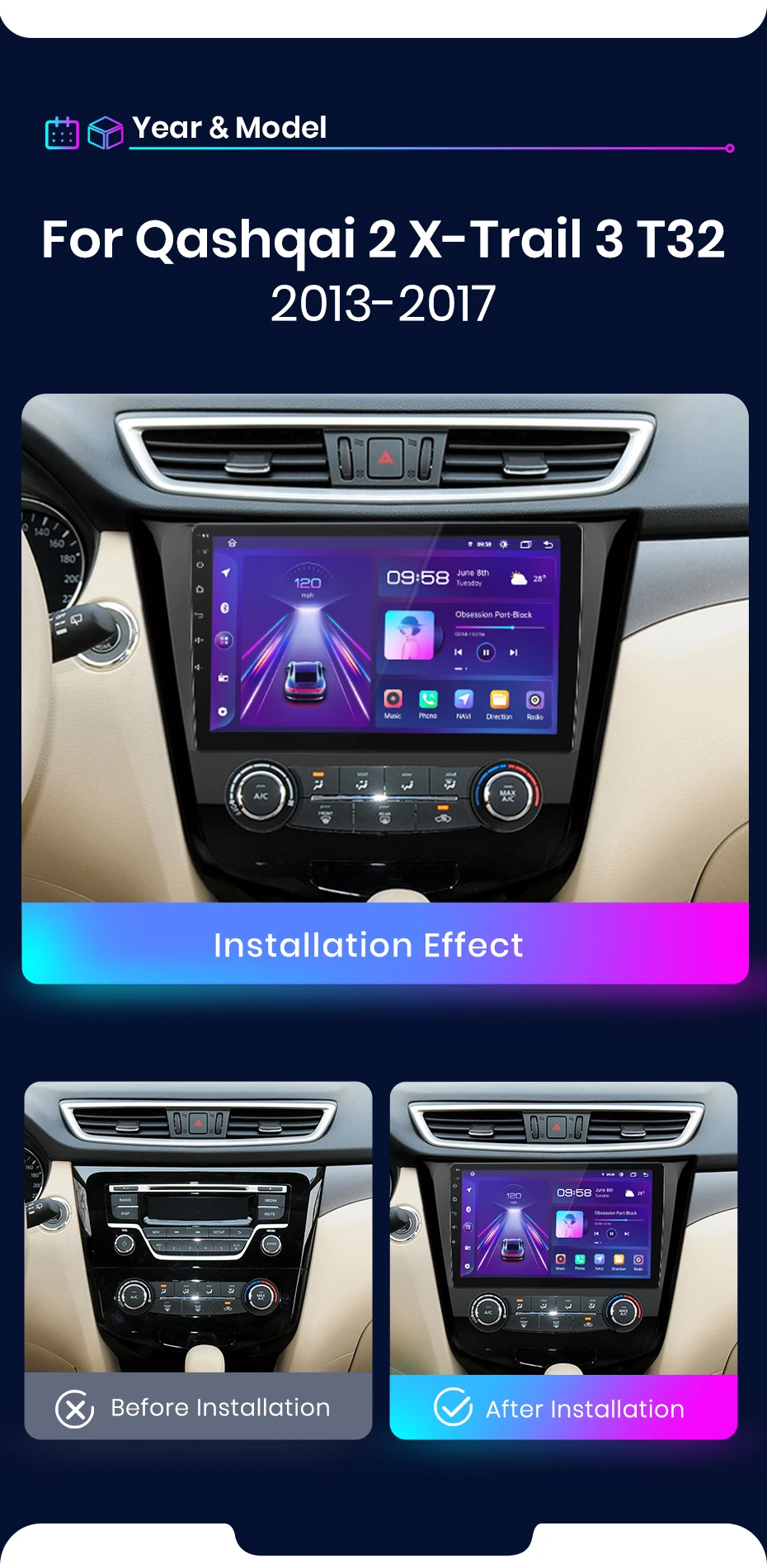RD001 Android Nissan qashqai 2 x-trail 3 t32 2013-2017 1GB a 8GB RAM e 16GB a 128GB ROM com ou sem Carplay