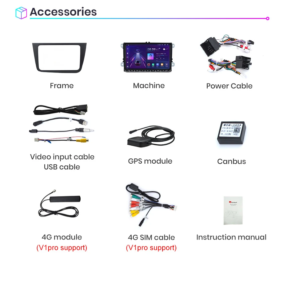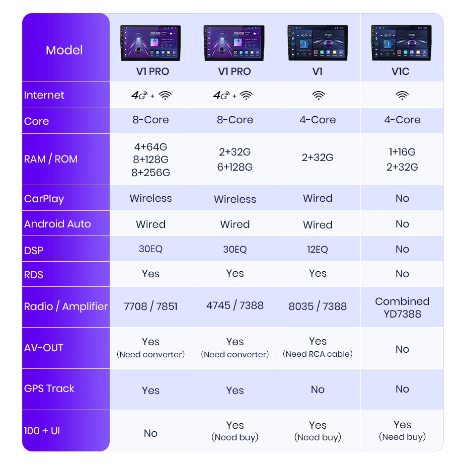 2. Built-in Carplay/ Android Auto: V1/V1Pro versão de apoio, basta usar o cabo do telefone conectá-lo, estável e fácil de usar;