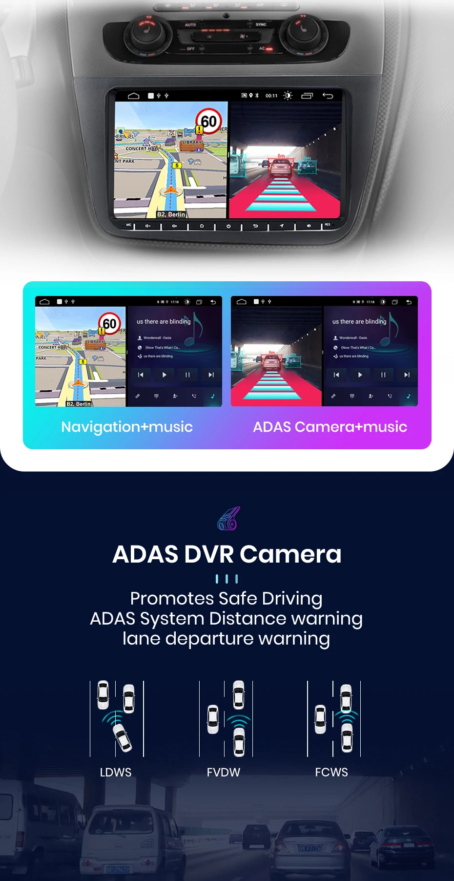 Você pode usar a navegação e outros aplicativos ao mesmo tempo, como ouvir música ou ativar a função ADAS.