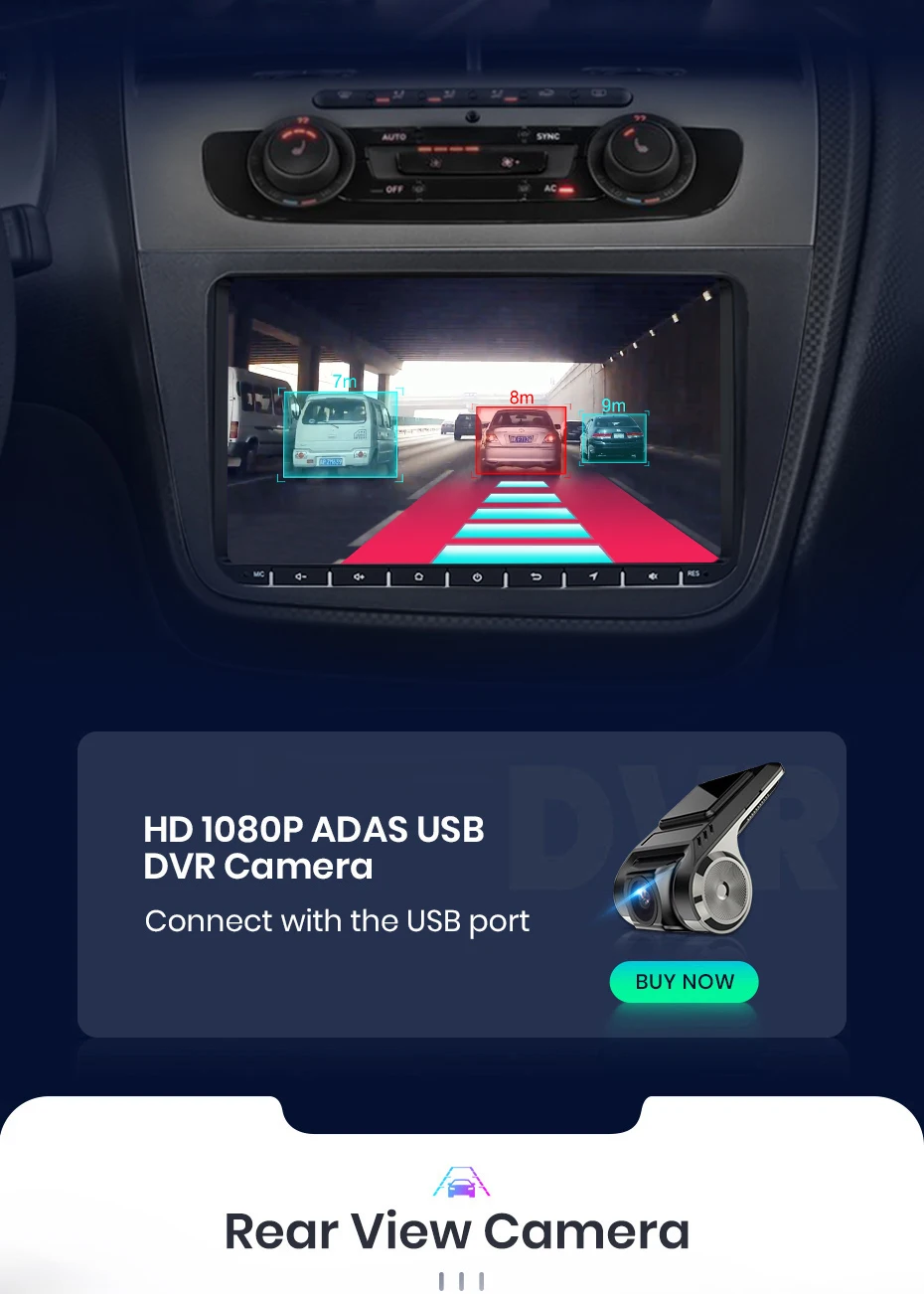 > Câmera ADAS DVR, monitoramento de pressão do pneu, OBD2, microfone externo, cabo RCA;