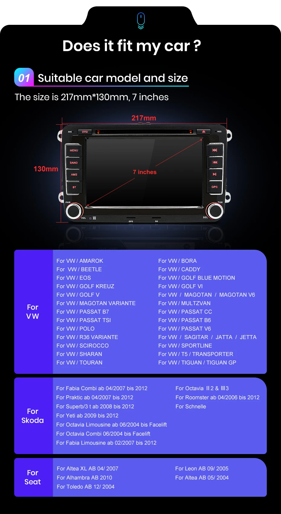 Steering Wheel Control : Compatible For VW/Volkswagen/Passat/GOLF/Polo/tiguan/jetta/touran/Skoda etc.