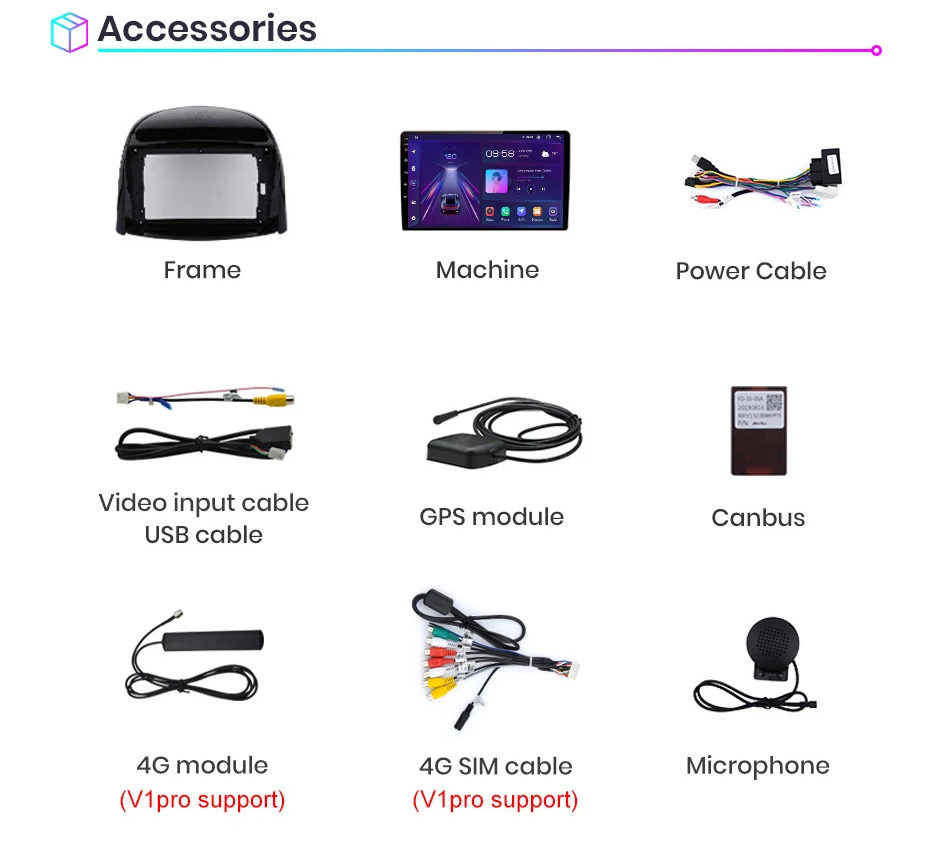2. built-in carplay/android automático: v1/v1pro versão de apoio, basta usar o cabo do telefone conectá-lo, estável e fácil de usar;