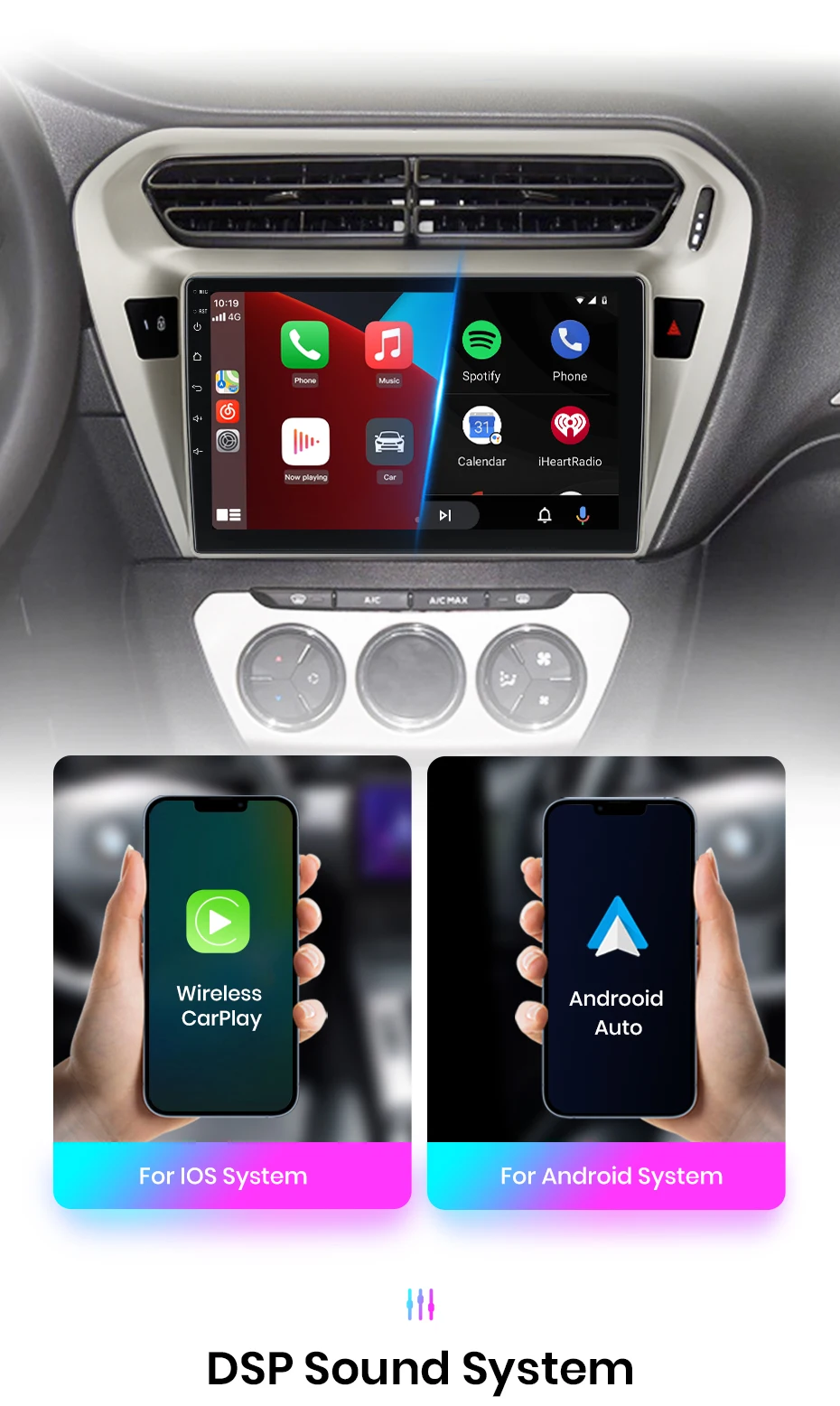 >> O rádio Junsun suporta Wireless CarPlay e Android Auto, permitindo que você use funções e aplicativos do smartphone, como navegação, música, chamadas e mensagens durante sua jornada. Proporciona uma experiência áudio de alta qualidade, melhorando o entretenimento e a conveniência da sua experiência de condução.
