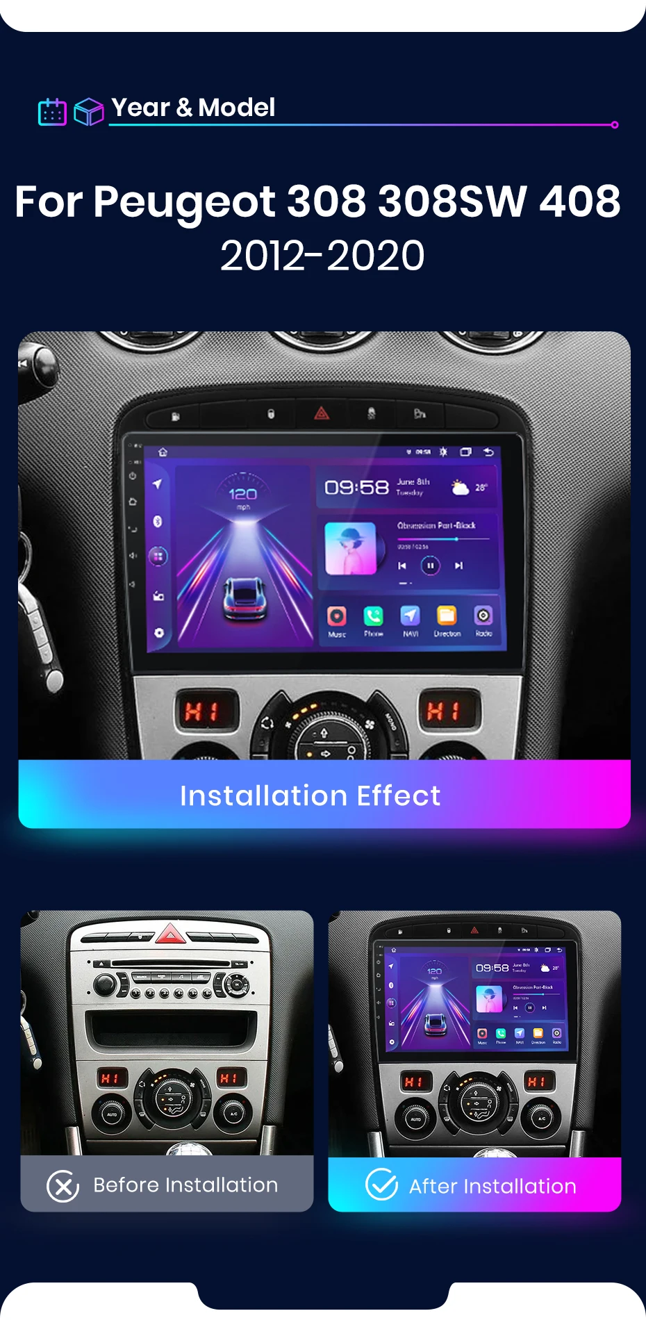 Junsun V1 série rádio Para Peugeot 308 308SW 408 2012-2020