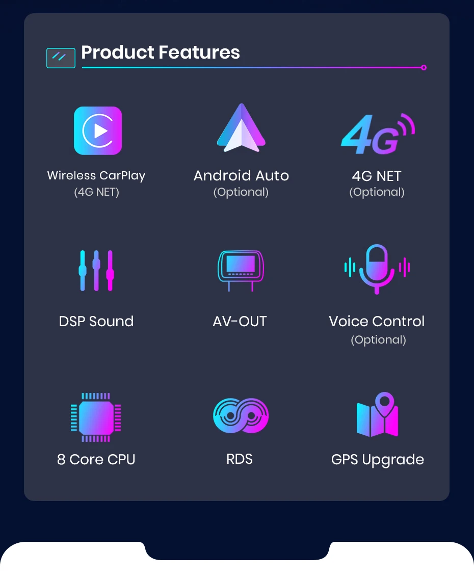 2. built-in carplay/android automático (opcional): navegação mapa de acesso, contatos de telefone, notificação, música e muito mais no rádio, estável e fácil de usar;