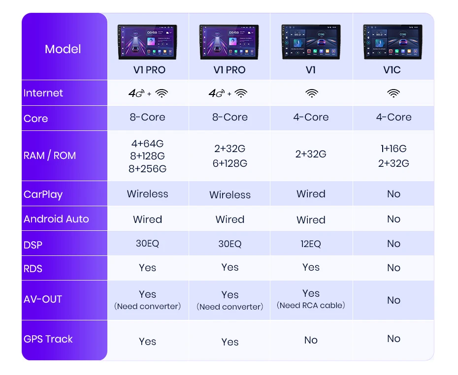 >> Informação alerta: v1c não suporta carplay, suporte v1 carplay com fio, suporte v1pro carplay sem fio;