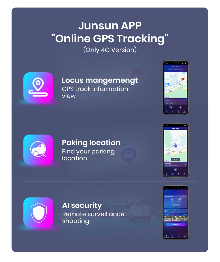 >> Função de controle remoto: você pode verificar informações de rastreamento e localização de estacionamento em seu telefone; o que é mais se você comprar o dvr especial, você pode tirar uma foto o que acontece nas proximidades do seu carro; tornando sua viagem segura, divertida e conveniente.