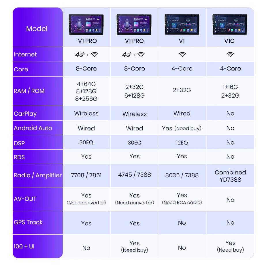 2. built-in carplay/android automático: v1/v1pro versão de apoio, basta usar o cabo do telefone conectá-lo, estável e fácil de usar;