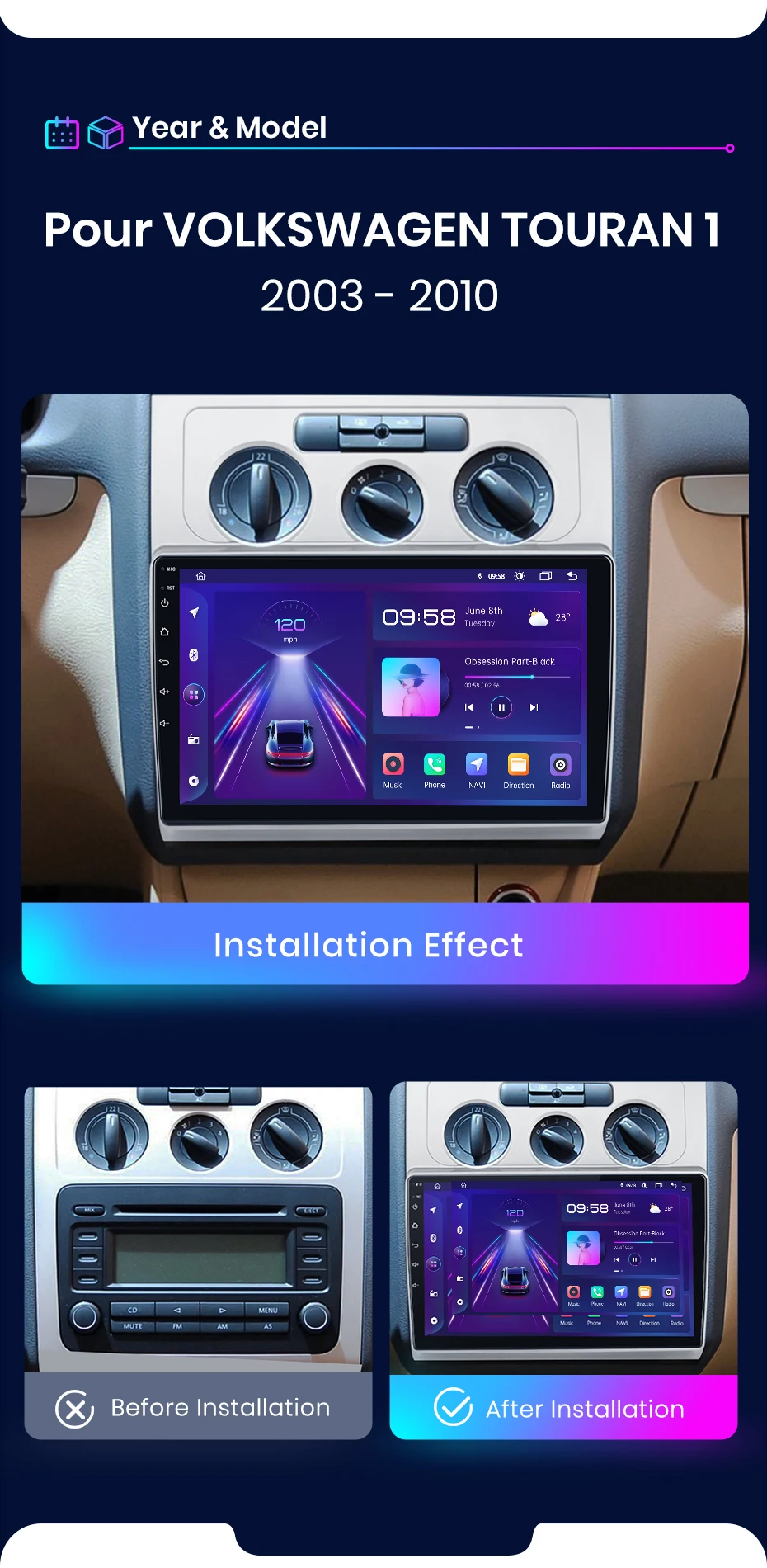 Para carros Volkswagen Touran 1 2003-2010, existem 2 estilos diferentes de consoles centrais, divididos em A/B.