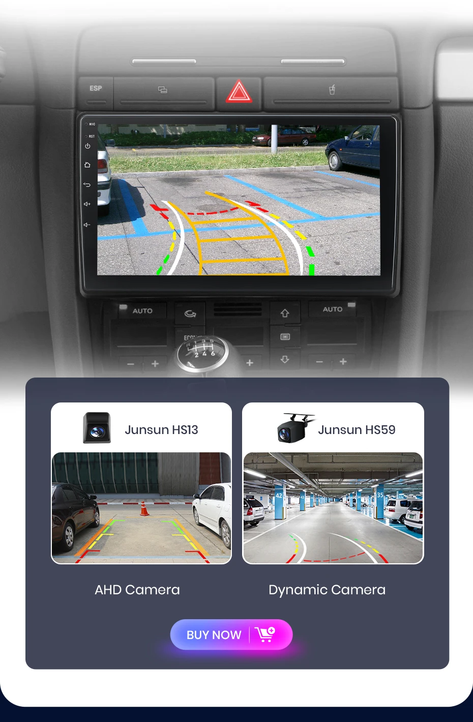 O rádio Junsun suporta Wireless CarPlay e Android Auto, permitindo que você use funções e aplicativos do smartphone, como navegação, música, chamadas e mensagens durante sua jornada. Proporciona uma experiência áudio de alta qualidade, melhorando o entretenimento e a conveniência da sua experiência de condução.