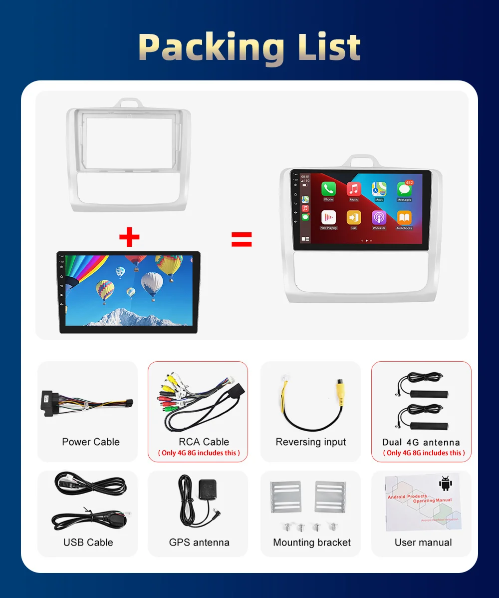 RD102 Android ford focus 2 mk2 2004-2011 1GB a 8GB RAM e 16GB a 128GB ROM com ou sem Carplay