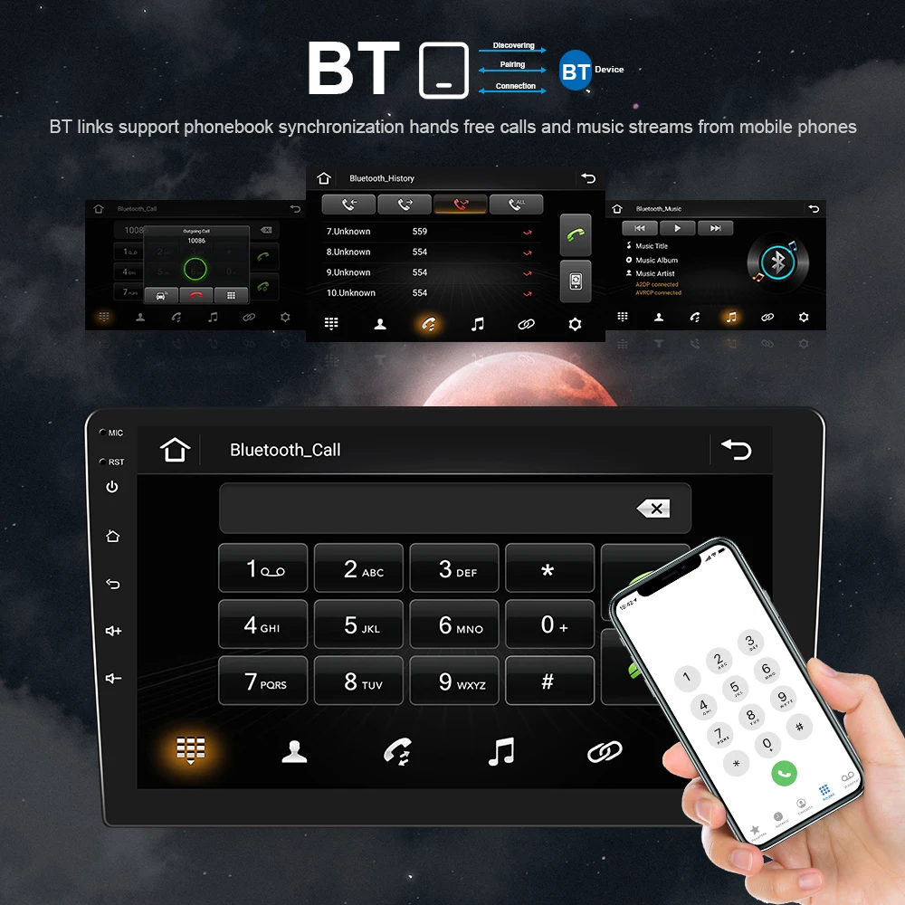 Built built-in a2dp/mãos livres/livro de telefone bluetooth: bluetooth chamada mãos-livres, reprodução de música bluetooth, carregamento automático da lista de telefone, em comparação com a versão anterior, a velocidade é mais rápida e a capacidade do canal é maior
