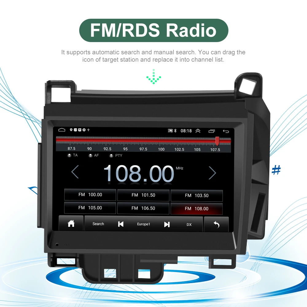 Música on-line você pode transferir a música para o estéreo do carro por fm para desfrutar do som estéreo do carro original, com 18 estações predefinidas