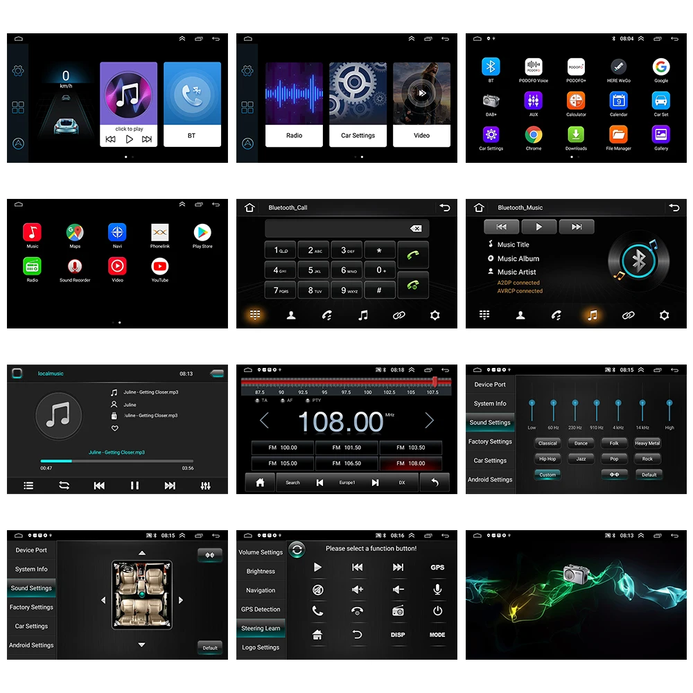 Características especiais : bluetooth,GPS embutido,Transmissor FM,Leitores de mp3,Sintonizador de rádio,Tela sensível ao toque