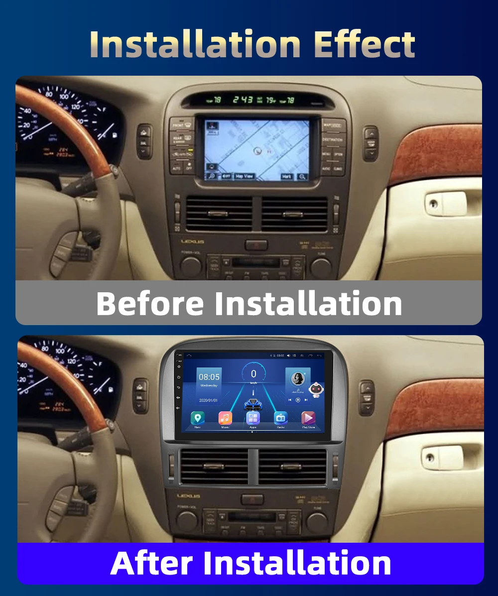 RD145 Android Lexus ls430 2001-2006 1GB a 8GB RAM e 16GB a 128GB ROM com ou sem Carplay
