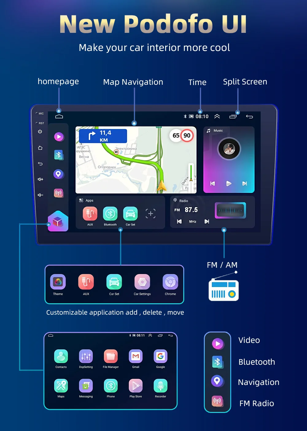 Configuração Especial : Alto-falante / microfone embutido,função Wi-Fi,Controle Da Roda de apoio Da Direção,Suporte Can-Bus