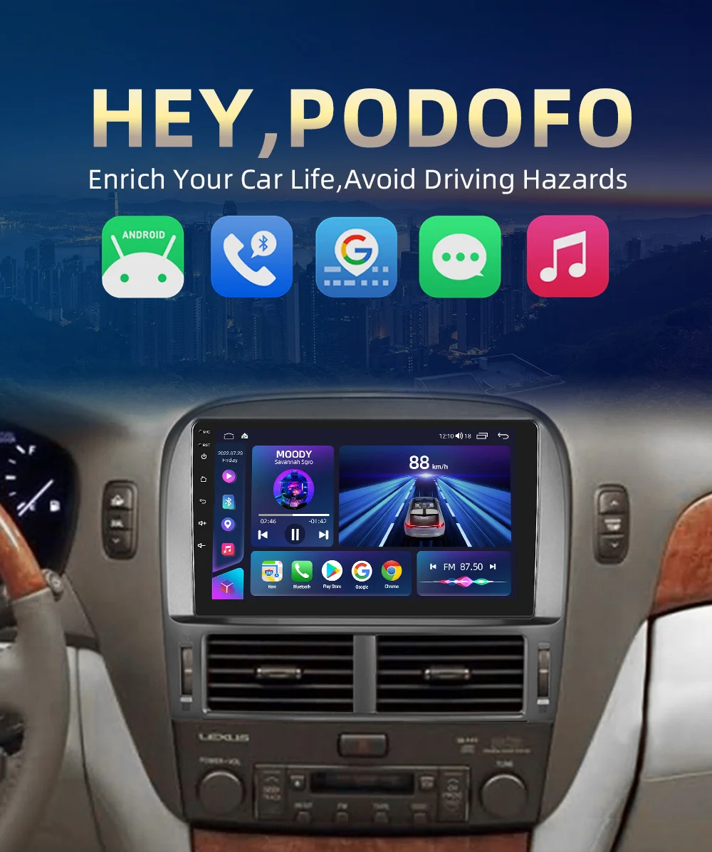 Podofo Para Lexus LS430 2001-2006 Car Radio Multimedia Video Player Navegação GPS Android 10 Não 2din 2 din dvd