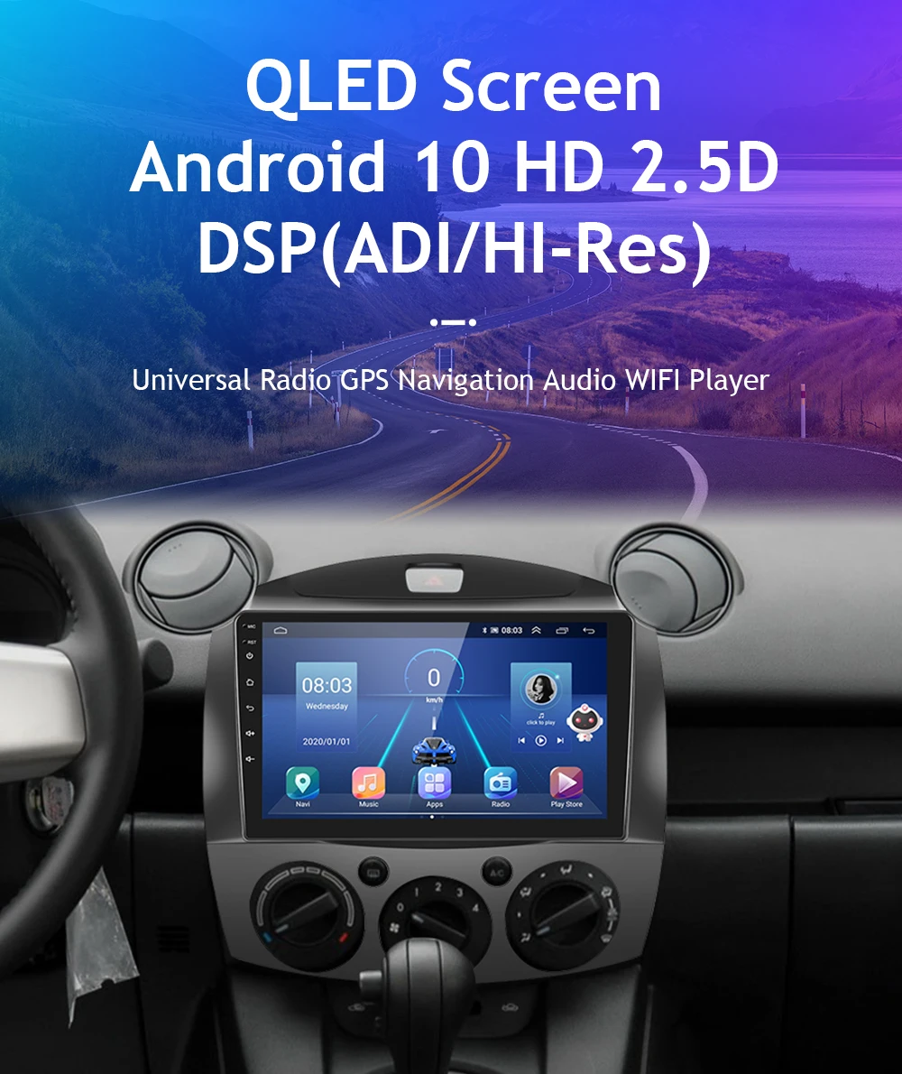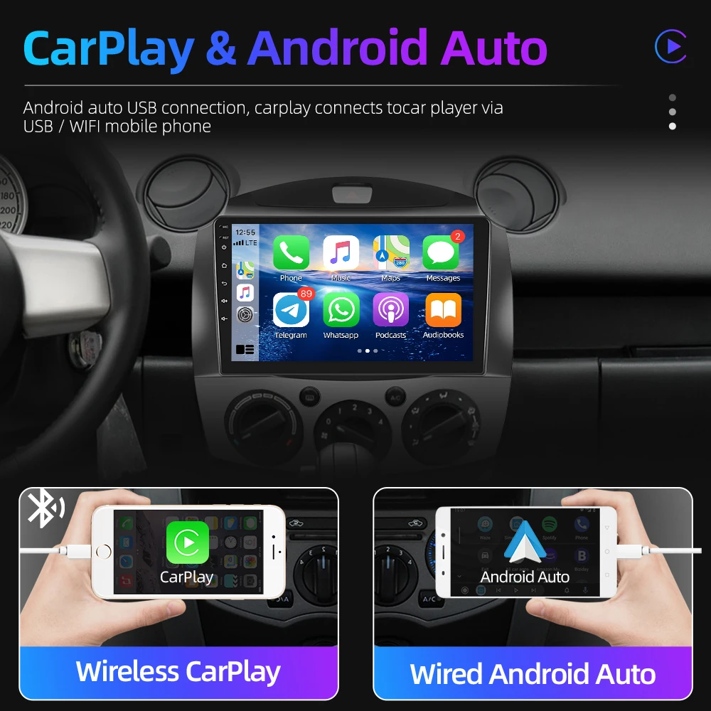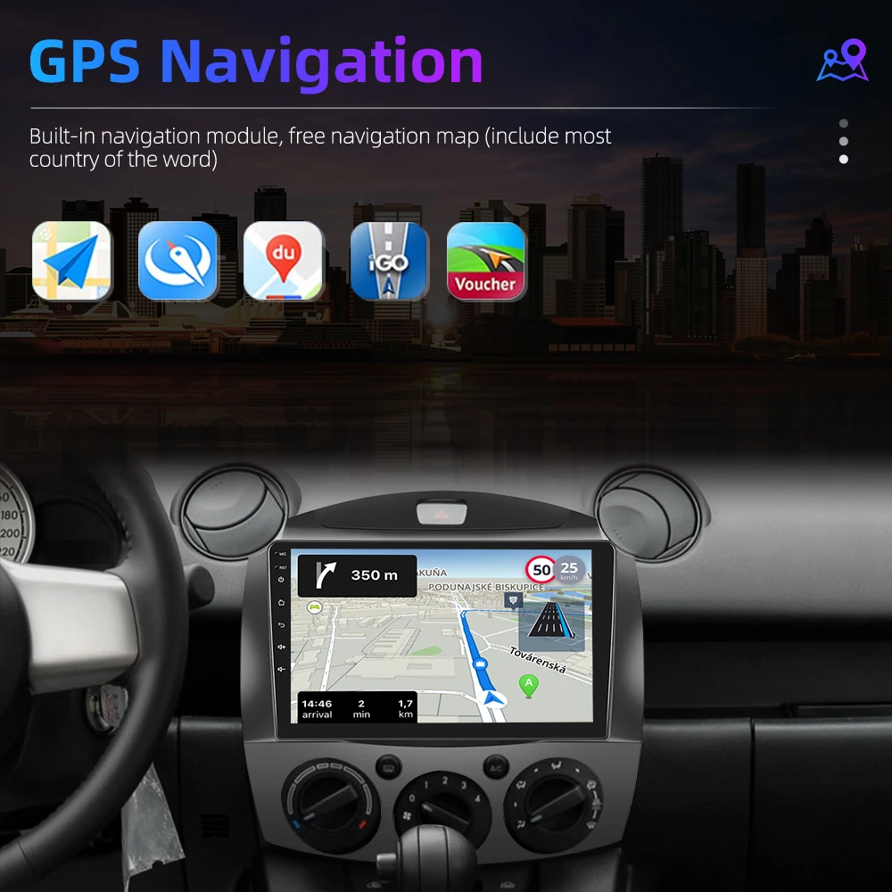 RD146 Android Mazda 2 2007-2014 1GB a 8GB RAM e 16GB a 128GB ROM com ou sem Carplay