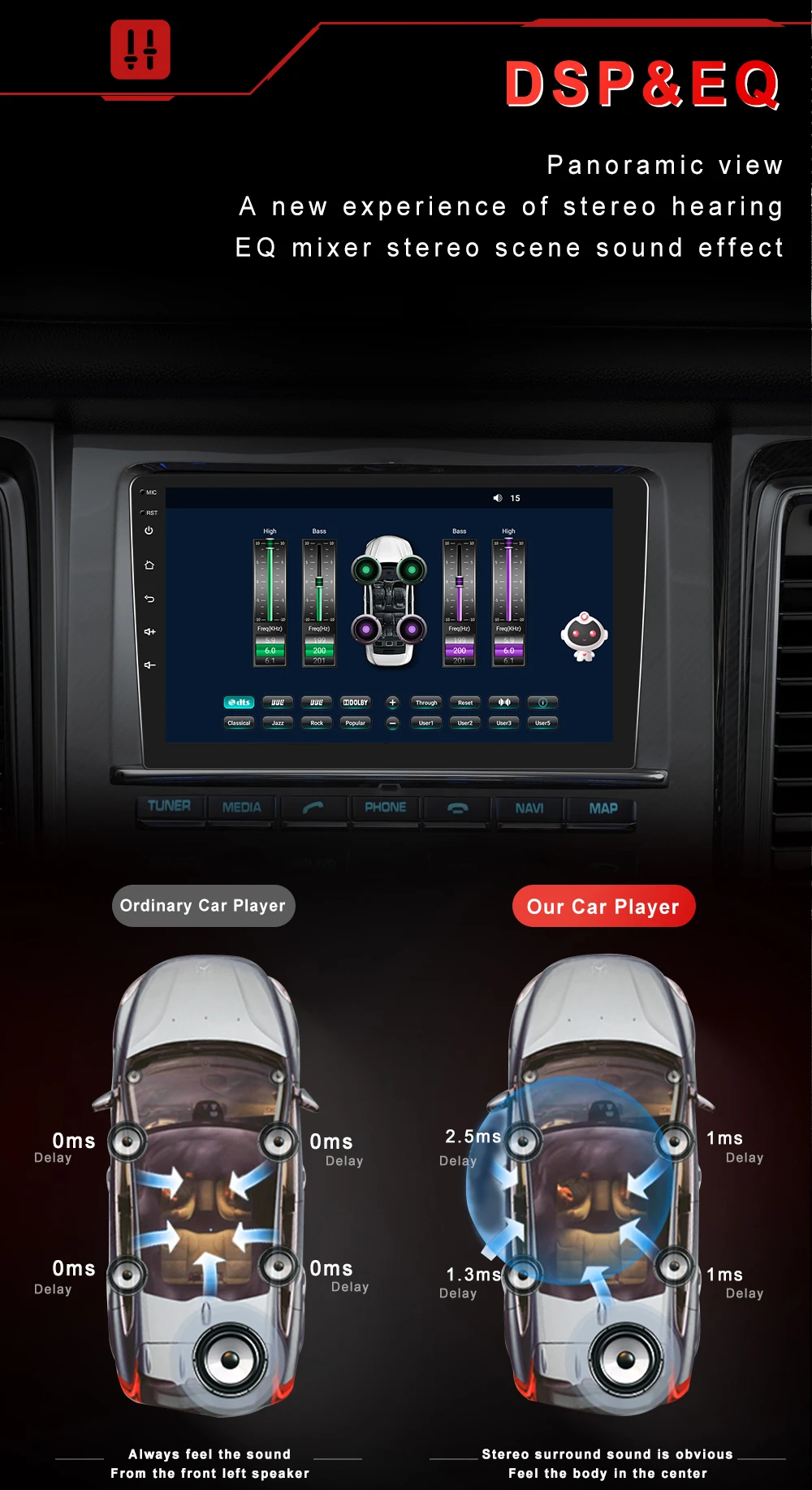 Ddsp: software de tuning dsp do carro, usando a tecnologia de tuning dsp, você pode ajustar a frequência, ae, equalização de 36 faixas, equalização de 10 faixas, e seleção de tipo de som no aplicativo para compensar a falta dos alto-falantes originais do carro e obter melhor qualidade de som sem perdas. Desfrutar de música no carro é a primeira escolha para audiófilos que estão procurando alta qualidade de som.