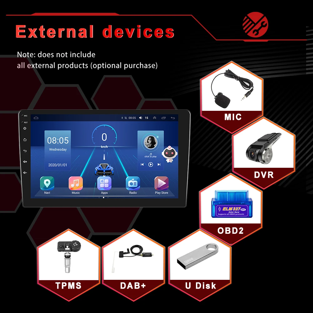 Radio fm/am/rds rádio: a música on-line pode ser transmitida ao estéreo do carro através de fm para desfrutar do estéreo do carro original, 30 estações de rádio predefinidas, chip de rádio high-end, redução de ruído poderosa e capacidade anti-interferência, função do apoio fm/am rds, pesquisa clara do canal e baixo ruído