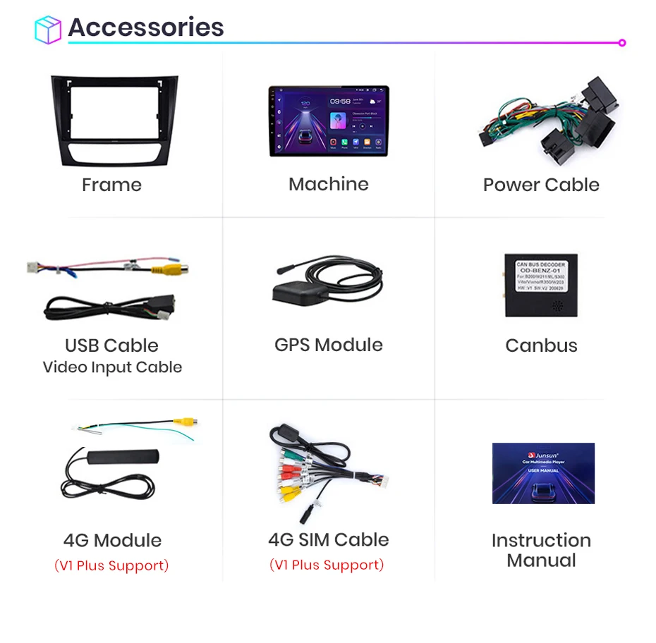 >> Rádio Junsun série V1 para Mercedes Benz W211 E200 E300 2002 2003 2004 2005 2006 2007 2008 2009 2010