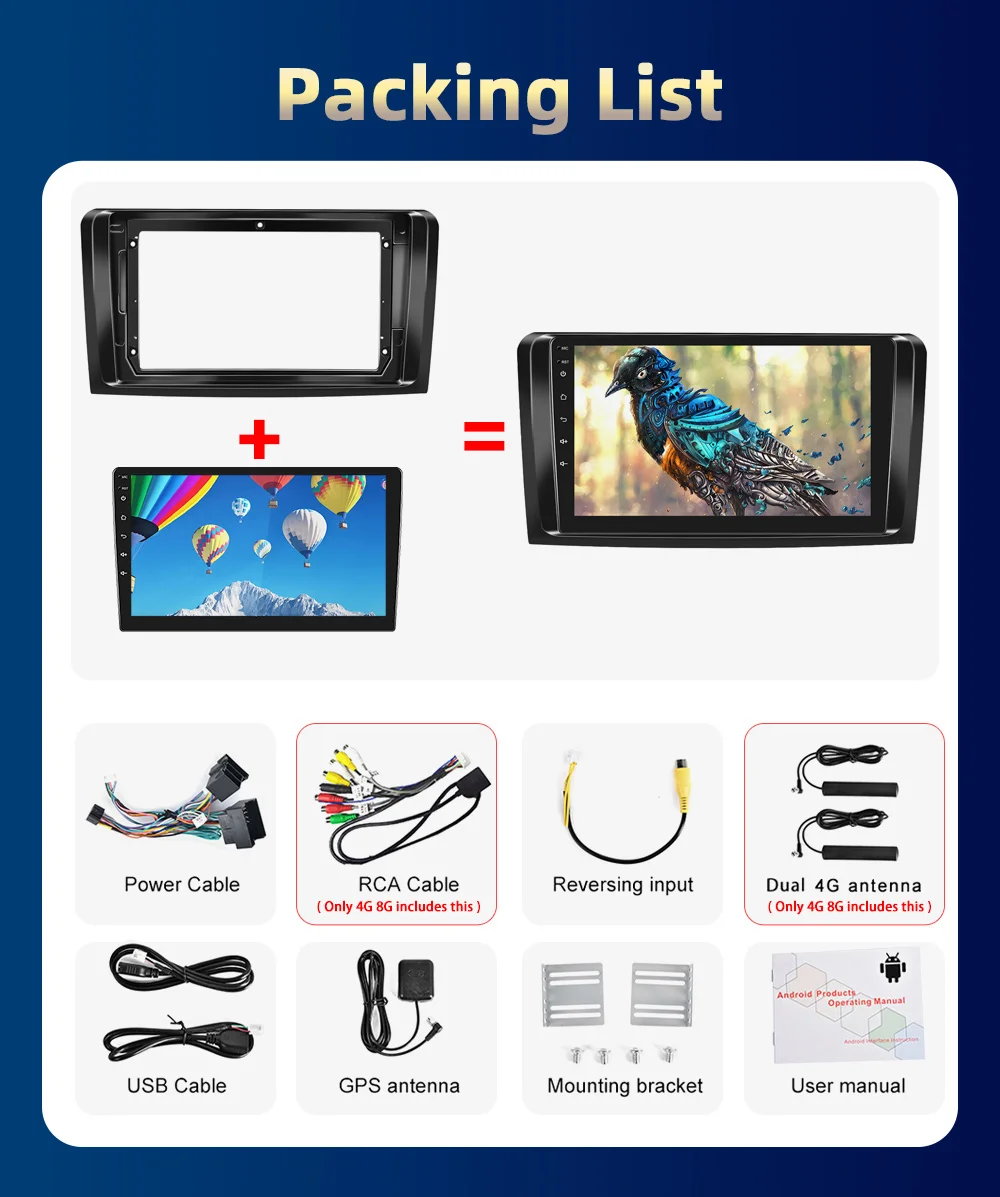 RD158 Android mercedes mercedes ml série 2005-2011 1GB a 8GB RAM e 16GB a 128GB ROM com ou sem Carplay