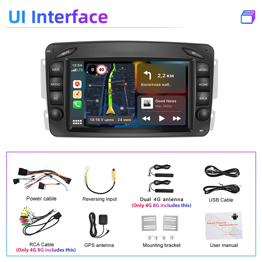 RD160 Android Mercedes clk w209 1GB a 8GB RAM e 16GB a 128GB ROM com ou sem Carplay