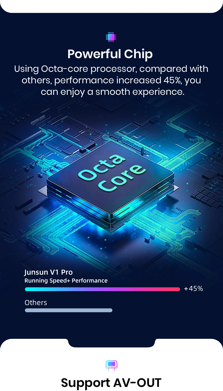 AV-OUT : V1 version supported, need to buy RCA cable