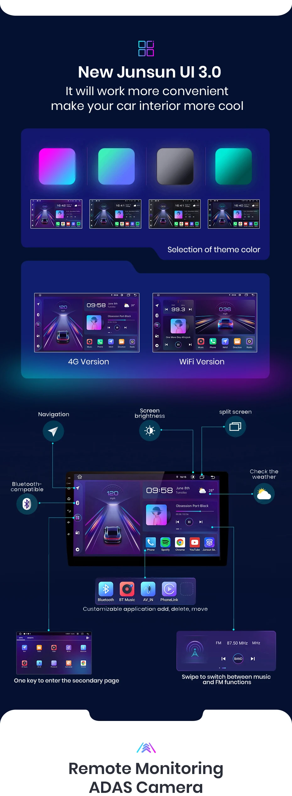 Você pode usar navegar e outros aplicativos ao mesmo tempo, como ouvir música ou ativar as funções ADAS DVR ect. Torne a operação mais conveniente.