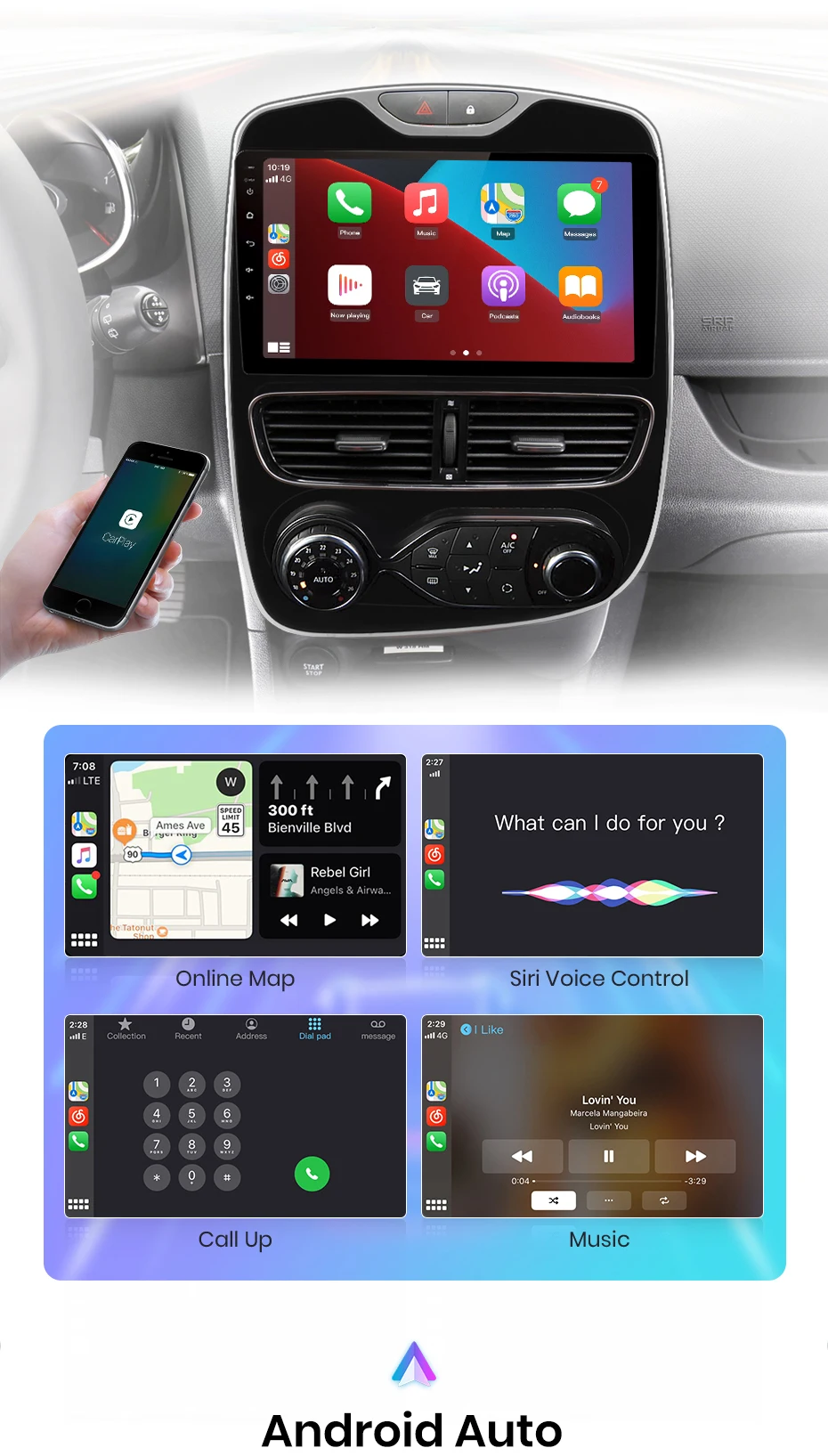 Basta conectar com o seu telefone que tornam possível para você acessar a navegação do mapa, contatos do telefone, notificação, música e muito mais. Você pode acordar siri ajuda a acessar essas funções, desta forma, você não só pode reduzir o tempo chato na condução, mas também aumentar significativamente o prazer de dirigir.