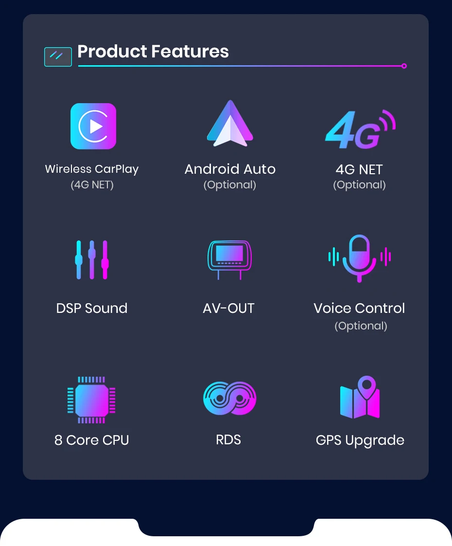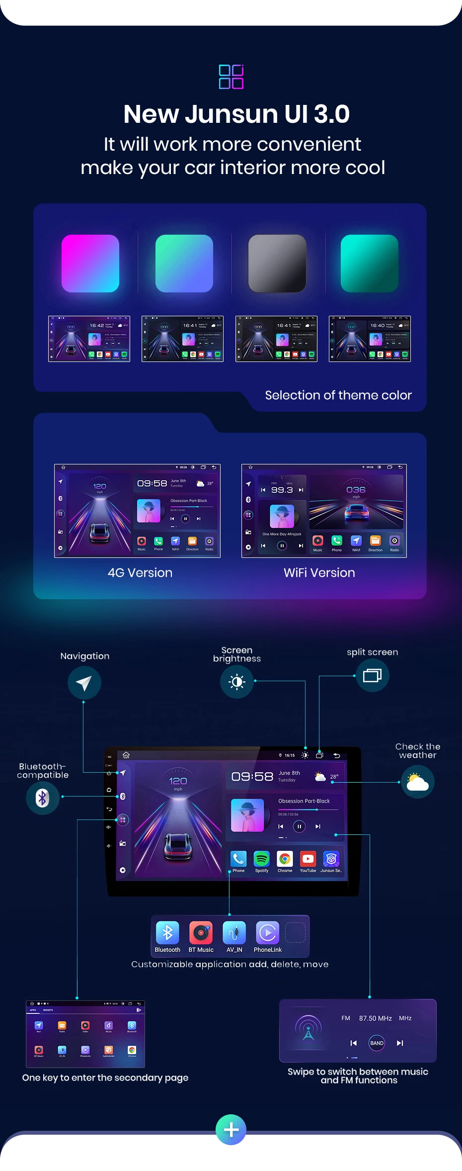 2. built-in carplay/android auto: navegação mapa de acesso, contatos de telefone, notificação, música e muito mais no rádio, estável e fácil de usar;