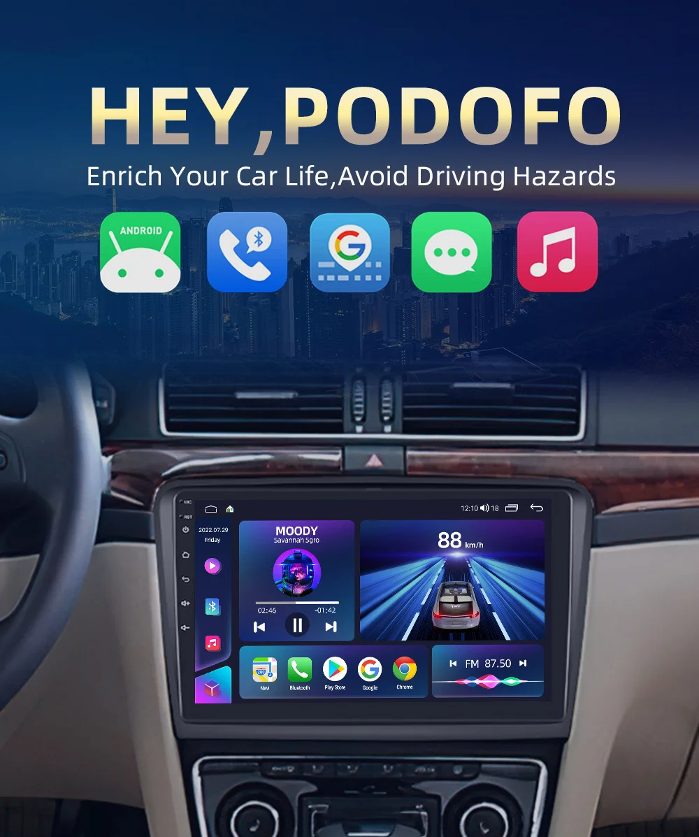 Leitor de vídeo multimídia rádio do carro do andróide 10 de podofo 2din para skoda haorui 2009-2013 navegação gps 2 din carplay 4g wifi dsp