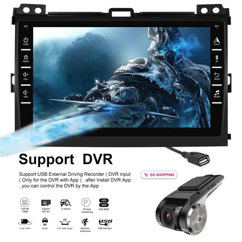 5. função de entrada dvr: suporte usb gravador de condução externo (dvr) de entrada (apenas para dvr com app), você pode controlar o dvr pelo aplicativo