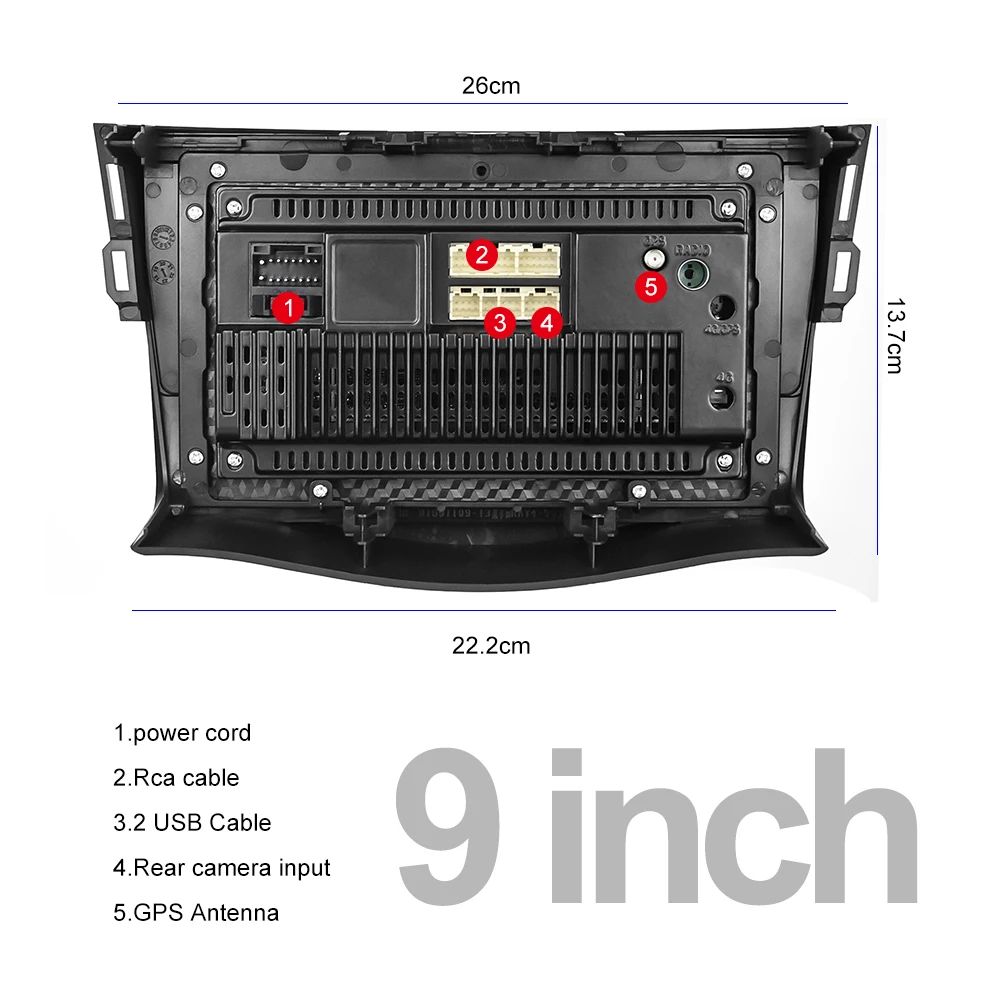 Screen size: : 9'' Capacitive screen