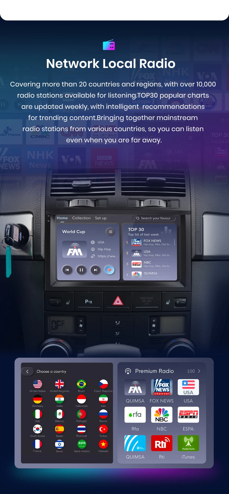 Remote control car radio : By "Junsun Online" APP