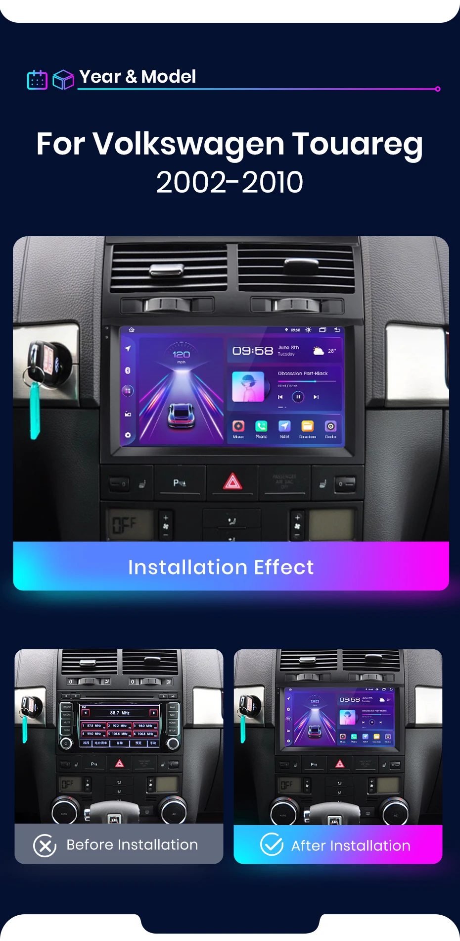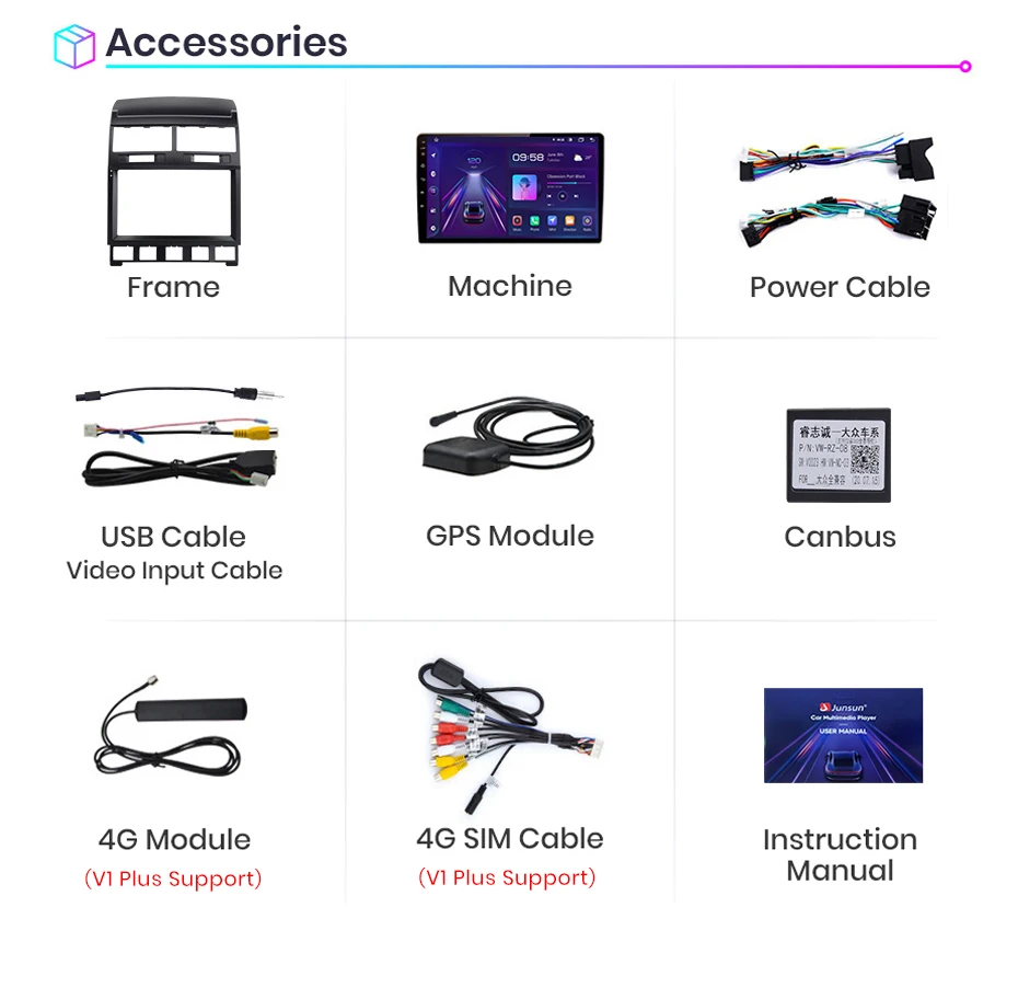 >> Rádio da série Junsun V1 para Volkswagen Touareg 2002 2003 2004 2005 2006 2007 2008 2009 2010