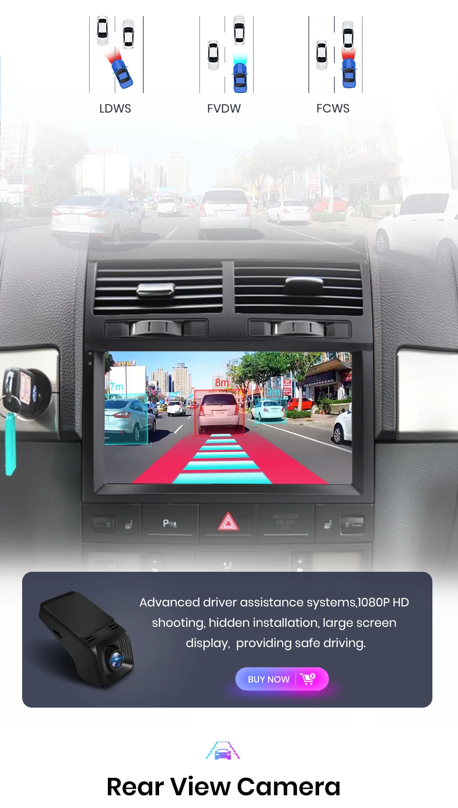 Sistemas avançados de assistência ao motorista, disparo HD 1080P, instalação oculta, tela grande, proporcionando uma condução segura.