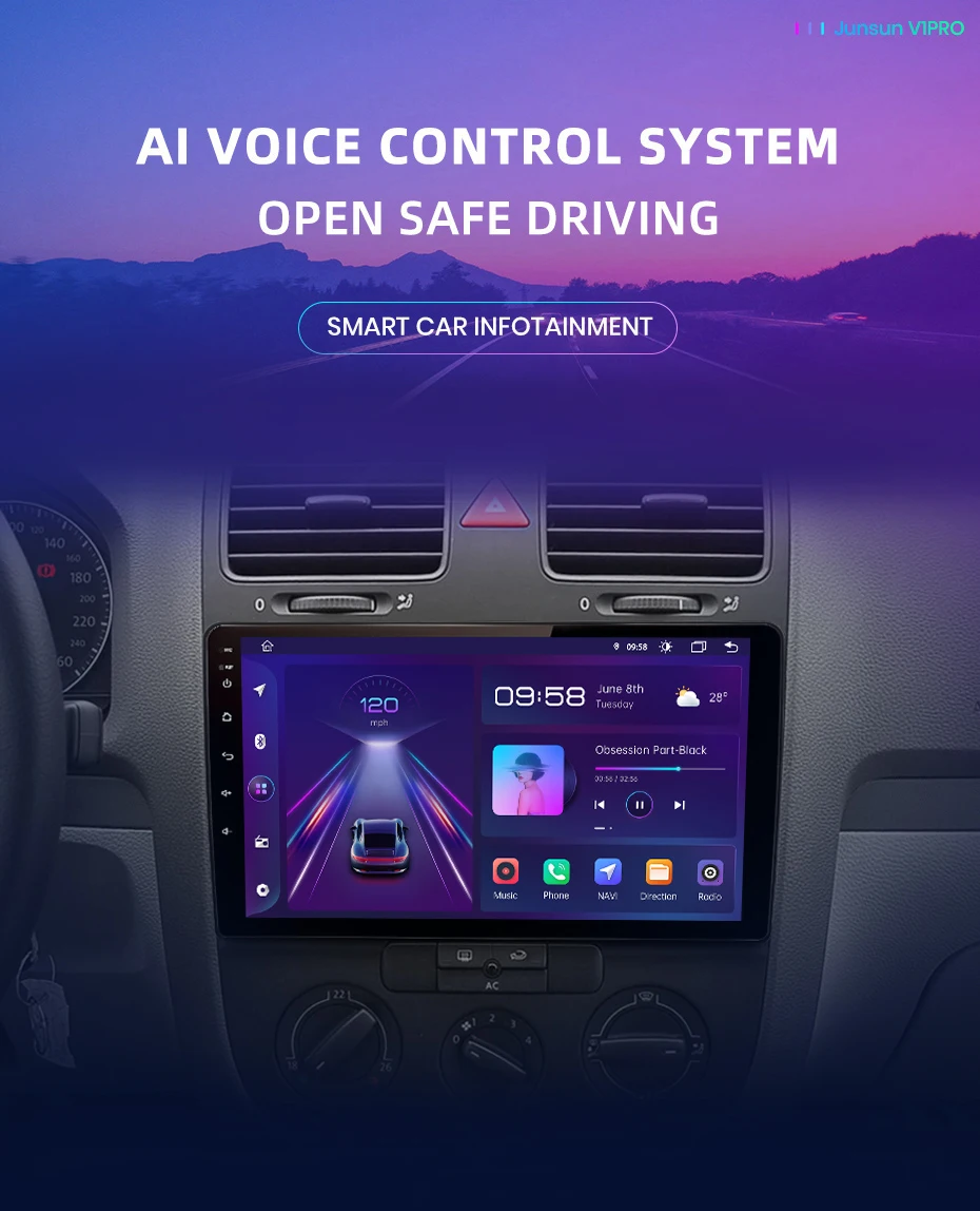 > AI Voice Control: Apenas o Junsun suporta a versão PRO, basta dizer que a palavra de comando controla o rádio sem as mãos, torna a condução mais segura;