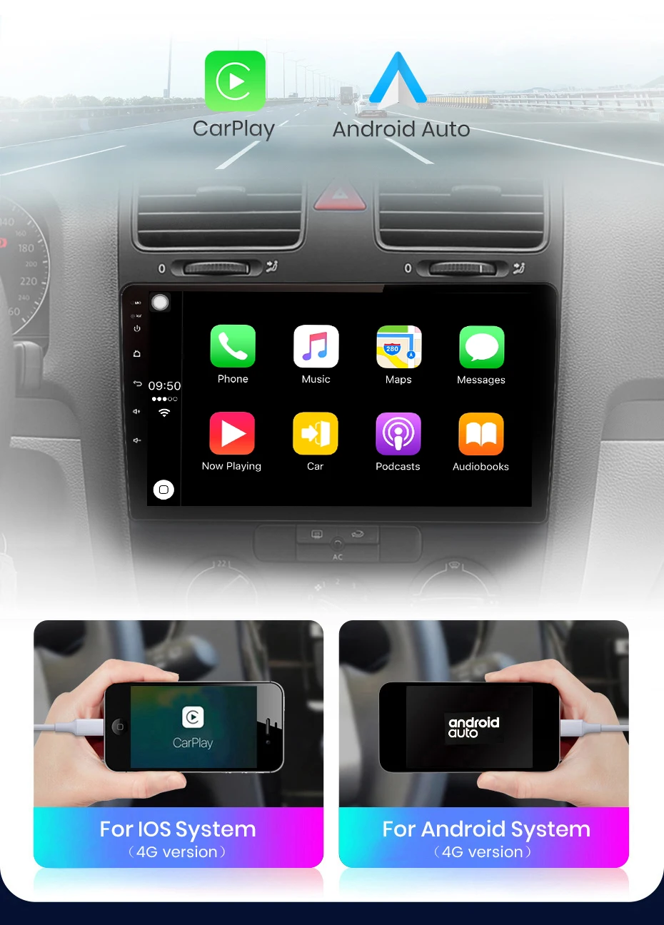 RD231 Android Volkswagen jetta golf 2005-2010 1GB a 8GB RAM e 16GB a 128GB ROM com ou sem Carplay