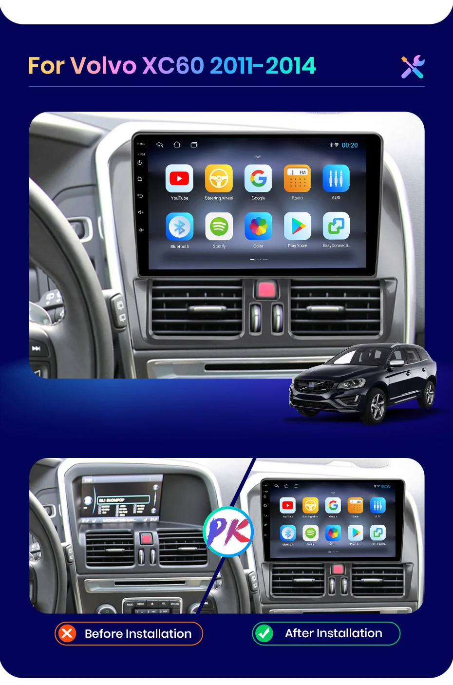 RD234 Android Volvo X60 2011-2014 1GB a 8GB RAM e 16GB a 128GB ROM com ou sem Carplay