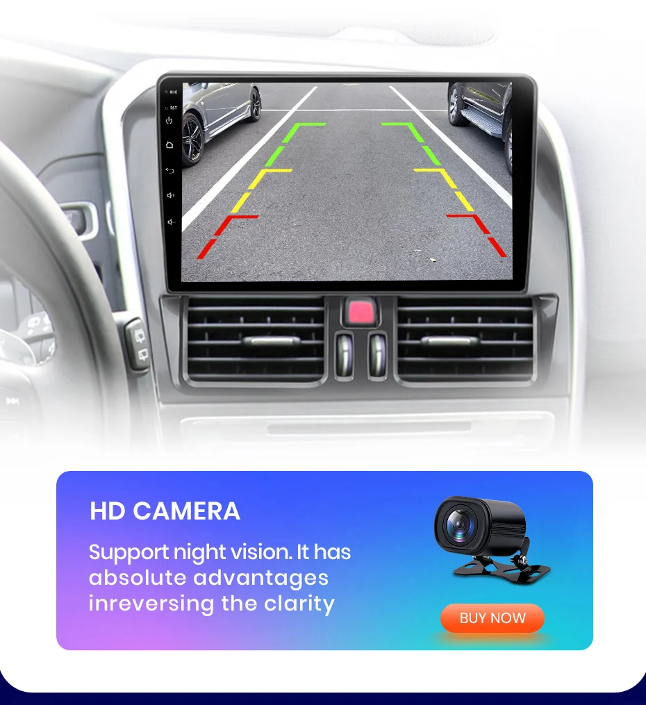 Quando o carro muda para o reverso, a tela mudará para a visão traseira com linhas de estacionamento automaticamente, ajudará você a fazer backup ou estacionar o carro.